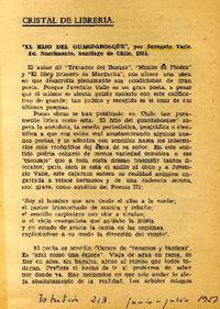 "El hijo del guardabosque". [artículo] Estudios (Revista : Santiago, Chile)-- no 213 (Junio-Julio 1951), páginas 62-63. .