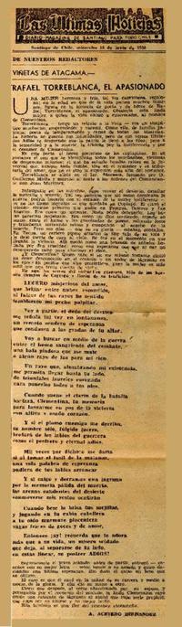 Rafael Torreblanca, el apasionado [artículo] / A. Acevedo Hernández. Las Últimas Noticias (Diario : Santiago, Chile)-- jun. 15, 1938, s/p. .