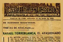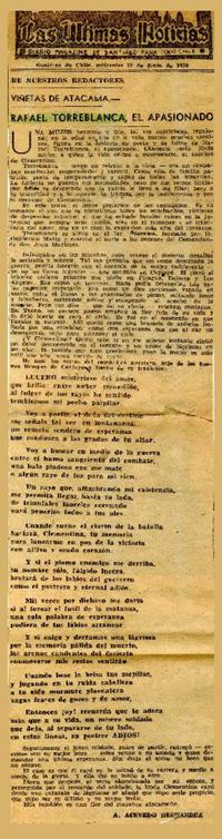 Rafael Torreblanca, el apasionado [artículo] / Antonio Acevedo Hernández. Las Últimas Noticias (Diario : Santiago, Chile)-- jun. 15, 1938, s/p. .