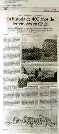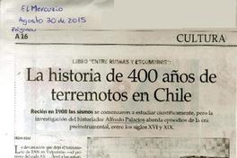 La historia de 400 años de terremotos en Chile [artículo] / Iñigo Díaz. El Mercurio (Diario : Santiago, Chile)-- Agosto 30, 2015, página A16. .