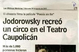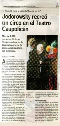 Jodorowsky recreó un circo en el Teatro Caupolicán [artículo] / Carolina Saavedra. Las Últimas Noticias (Diario : Santiago, Chile)-- Agosto 26, 2015, página 45. .