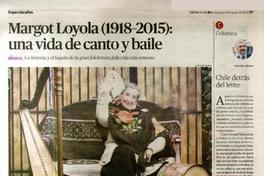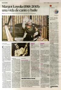 Margot Loyola (1918-2015): una vida de canto y baile [artículo] / Amelia Carvallo. Crónica Chillán (Diario : Chillán, Chile)-- Agosto 9, 2015, página 19. El Mercurio (Diario : Valparaíso, Chile)-- El Mercurio (Diario : Antogasta, Chile)-- .