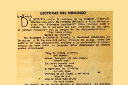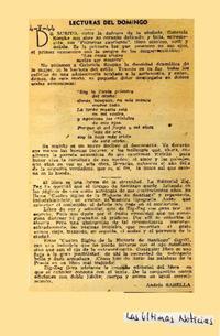 Primeras canciones [artículo] / Andrés Sabella. Las Últimas Noticias (Diario : Santiago, Chile)-- Mayo 4, 1944, s/p. .
