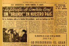 La filosofía de América tiene un "Grande" en nuestro país. [artículo] Las Últimas Noticias (Diario : Santiago, Chile)-- Mayo 19, 1951, página 7. .
