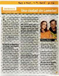Una ciudad sin Lemebel [entrevista] [artículo] Hoyxhoy (Diario : Santiago, Chile)-- septiembre 4, 2015, página 16. .