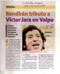 Rendirán tributo a Víctor Jara en Valpo. [artículo] La Estrella (Diario : Valparaíso, Chile)-- julio 3, 2015, página 23. .