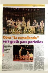 Obra "La remolienda" será gratis para porteños. [artículo] La Estrella (Diario : Valparaíso, Chile)-- julio 7, 2015, página 22. .