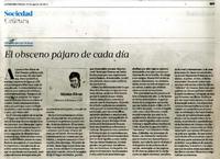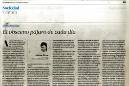 El obsceno pájaro de cada día. [artículo] / Matías Rivas. La Tercera (Diario : Santiago, Chile)-- agosto 29, 2015, página 107. .