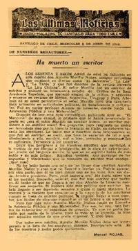 Ha muerto un escritor [artículo] Manuel Rojas.