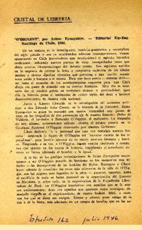 "O'Higgins" [artículo] / R. Astaburuaga. Estudios (Revista : Santiago, Chile)-- no 162 (julio 1946), páginas 70-71. .