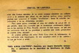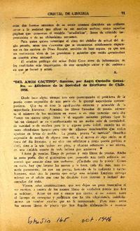 "Del amor cautivo" [artículo] / J.M.S. Estudios (Revista : Santiago, Chile)-- no 165 (octubre 1946), páginas 71-72. .