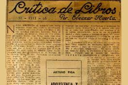 Adolescencia y cultura [artículo] / Eleazar Huerta. Las Últimas Noticias (Diario : Santiago, Chile)-- agosto 31, 1946, s/p. .