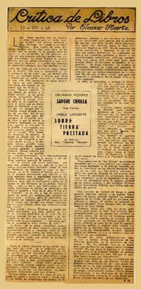 Sangre criolla [artículo] / Eleazar Huerta. Las Últimas Noticias (Diario : Santiago, Chile)-- agosto 13, 1946. .
