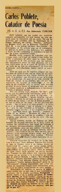 Carlos Poblete catador de poesía [artículo] / Edmundo Concha. El Mercurio (Diario : Santiago, Chile)-- enero 26, 1963. .