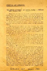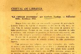 "La ciudad dormida" [artículo] / Jorge Fuenzalida Pereyra. Estudios (Revista : Santiago, Chile)-- no 132 (enero 1944), páginas 69-70. .