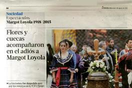 Flores y cuecas acompañaron en el adiós a Margot Loyola [artículo] / Jimmy Gavilán. La Tercera (Diario : Santiago, Chile)-- agosto 5, 2015, página 50-51 (suplemento "Sociedad") .