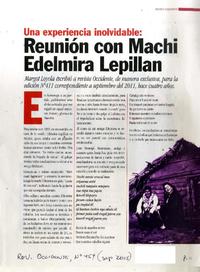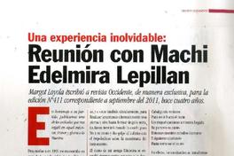 Reunión con Machi Edelmira Lepillan. [artículo] Revista Occidente (Revista : Santiago, Chile)-- no 454 (septiembre 2015), páginas 61-62. .