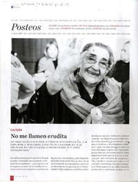 No me llamen erudita [artículo] / Marisol García. Qué Pasa (Revista : Santiago, Chile)-- no 2313 (agosto 7, 2015), páginas 18-19. .