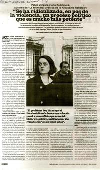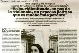 Materias: Rodríguez, Ana - La frontera: crónica de la Araucanía rebelde - Autores chilenos - Vergara, Pablo