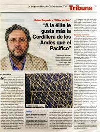 "A la élite le gusta más la cordillera de los Andes que el Pacífico" [entrevista] / [artículo] : Patricio Pino M. La Segunda (Diario : Santiago, Chile)-- septiembre 30, 2015, página 13. .