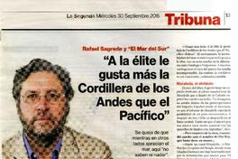 "A la élite le gusta más la cordillera de los Andes que el Pacífico" [entrevista] [artículo] : Patricio Pino M.