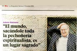 "El mundo, sacándole toda la pechoñería espiritualista, es un lugar sagrado" [entrevista] [artículo] / Juan Carlos Ramírez F. La Segunda (Diario : Santiago, Chile)-- octubre 2, 2015, páginas 46-47. .