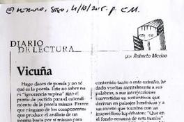 Vicuña [artículo] / Roberto Merino. El Mercurio (Diario : Santiago, Chile)-- octubre 4, 2015, página E11 (suplemento "Revista de Libros") .