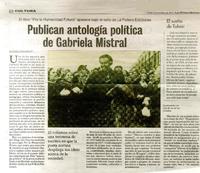 Publican antología política de Gabriela Mistral [artículo] Leonardo Sanhueza.