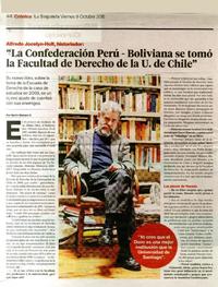 "La confederación Perú-Boliviana se tomó la Facultad de Derecho de la U. de Chile" [artículo] / Martín Romero E. La Segunda (Diario : Santiago, Chile)-- octubre 9, 2015, páginas 44-45. .