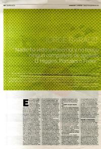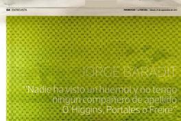 Jorge Baradit : "Nadie ha visto un huemul y no tengo ningún compañero de apellido O'Higgns, Portales o Freire" [entrevista] / [artículo] : Carlos Pérez Estay. La Tercera (Diario : Santiago, Chile)-- Septiembre 19, 2015, páginas 04-06 (Suplemento "Tendencias") 3 páginas : ilustraciones en color ; 38 cm. .