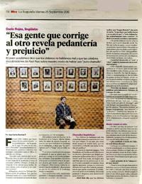 "Esa gente que corrige alotro revela pedantería y prejuicio" [entrevista] [artículo] / Juan Carlos Ramírez. F. La Segunda (Diario : Santiago, Chile)-- septiembre 25, 2015, páginas 52-53. .
