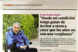 "Desde mi condición tengo ganas de invitar a otros a creer que los años no son una vergüenza" [artículo] / Rebeca Araya Basualto. La Segunda (Diario : Santiago, Chile)-- septiembre 26, 2015, páginas 10-11. .