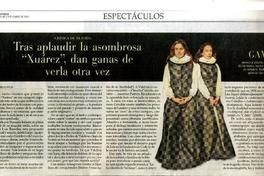 Tras aplaudir la asombrosa "Xuárez", dan ganas de verla otra vez [artículo] Pedro Labra Herrera.