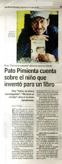 Pato Pimienta cuenta sobre el niño que inventó para un libro [artículo] / Sergio Vallejos. Las Últimas Noticias (Diario : Santiago, Chile)-- octubre 21, 2015, página 45. .