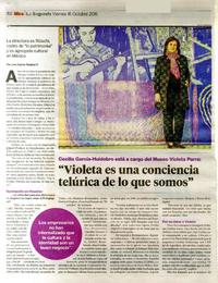 "Violeta es una conciencia telúrica de lo que somos" [entrevista] [artículo] / Juan Carlos Ramírez F. La Segunda (Diario : Santiago, Chile)-- octubre 16, 2015, páginas 52-53. .