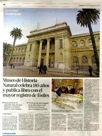 Museo de Historia Natural celebra 185 años y publica con el mayor registro de fósiles [artículo] / Cristina Espinoza. La Tercera (Diario : Santiago, Chile)-- septiembre 3, 2015, páginas 50-51. .