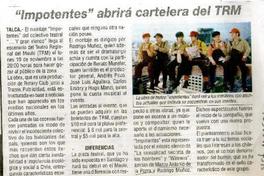 "Impotentes" abrirá cartelera del TRM. [artículo] El Centro (Diario : Talca, Chile)-- noviembre 14, 2007, página 28. .