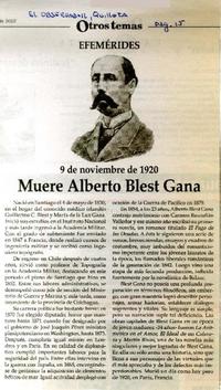 Muere Alberto Blest Gana. [artículo] El Observador (Diario : Quillota, Chile)-- noviembre 9, 2007, página 15. .