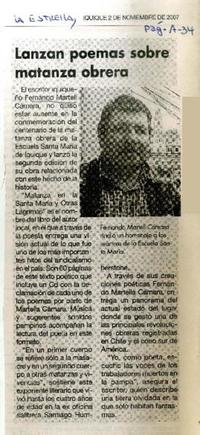 Lanzan poemas sobre matanza obrera. [artículo] La Estrella (Diario : Iquique, Chile)-- noviembre 2, 2015, página A34. .