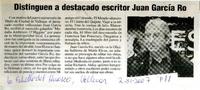 Distinguen a destacado escritor Juan García Ro. [artículo]