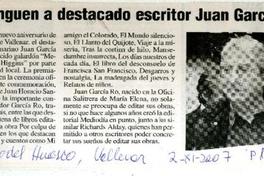 Distinguen a destacado escritor Juan García Ro. [artículo] La Estrella del Huasco (Diario : Vallenar, Chile)-- noviembre 2, 2007, página 11. .