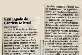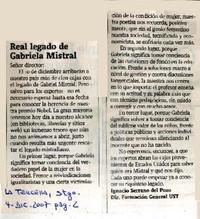 Real legado de Gabriela Mistral. [artículo] La Tercera (Diario : Santiago, Chile)-- diciembre 4, 2007, página 2. .