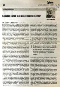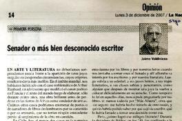 Senador o más bien desconocido escritor [artículo] Jaime Valdivieso.