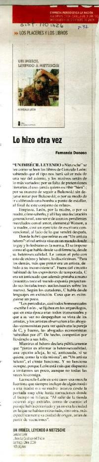 Lo hizo otra vez [artículo] Fernanda Donoso.