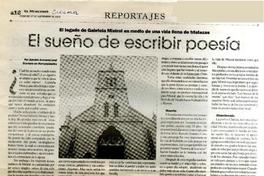 El sueño de escribir poesía [artículo] / Sandra Aravena Leal. El Mercurio (Diario : Calama, Chile)-- septiembre 27, 2009, página A16. .