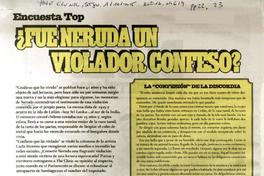 ¿Fue Neruda un violador, confeso? [artículo] / Macarena Gallo y Daniel Hopenhayn. The Clinic (Diario : Santiago, Chile)- año 16, no 614 (octubre 11, 2015), páginas 22-23. .