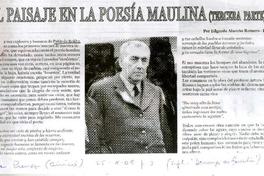 El paisaje en la poesía maulina, (tercera parte) [artículo] / Edgardo Alarcón Romero. La Prensa (Diario : Curicó, Chile)-- octubre 25, 2009, página 3 (suplemento "Domingo en familia") .