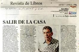 Salir de la casa [artículo] / Pedro Gandolfo. El Mercurio (Diario : Santiago, Chile)-- noviembre 1, 2015, página E11 (suplemento "Artes y Letras" "Revista de Libros") .