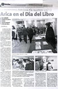 Arica en el día del libro [artículo] / Jenifer Martínez. La Estrella (Diario : Arica, Chile)-- abril 23, 2015, página 20. .