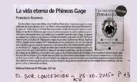 La vida eterna de Phineas Gage. [artículo] El Sur (Diario : Concepción, Chile)-- octubre 25, 2015, página 13 (suplemento "KU") Cronica (Diario : Chillán, Chile)-- .